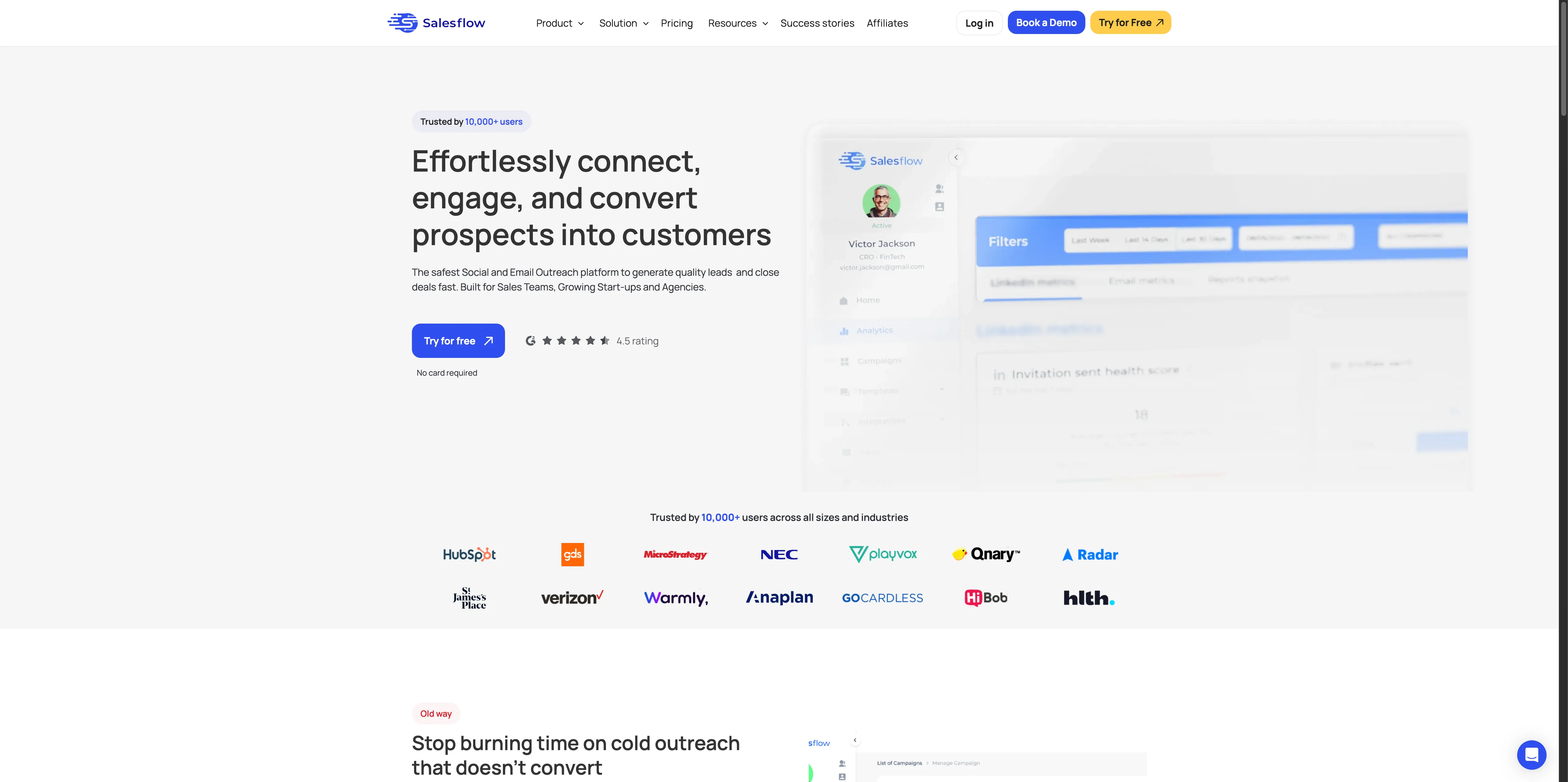 - Salesflow's outbound automation is fundamentally outdated: prospects recognize and ignore automated sequences, with response rates dropping to 5-10%